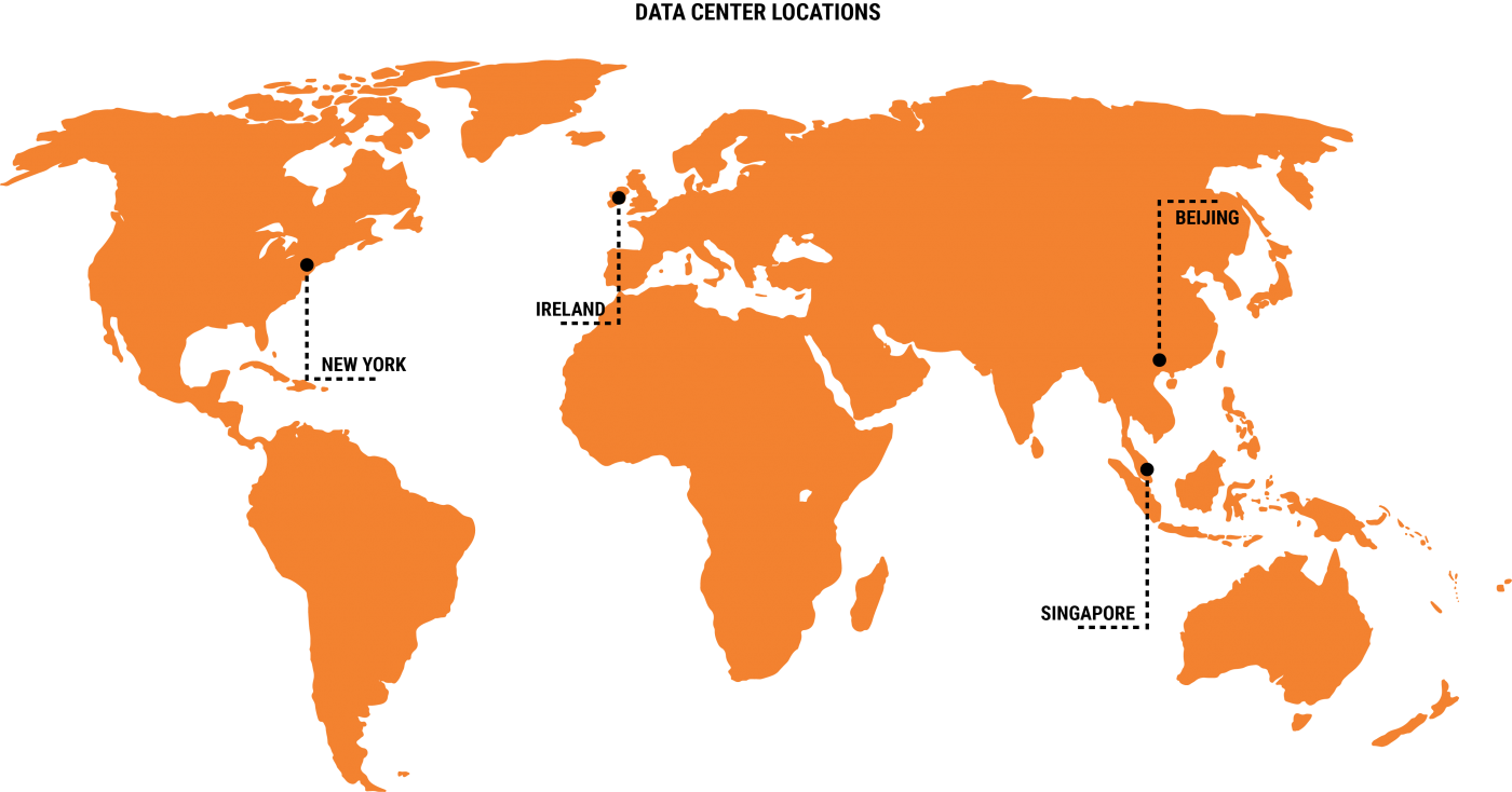 We expand our network with new locations as necessary. All nodes are interconnected for maximum availability and performance: Each device automatically registers with the datacenter that has the lowest latency and clients are routed to the correct datacenter when requesting a device.