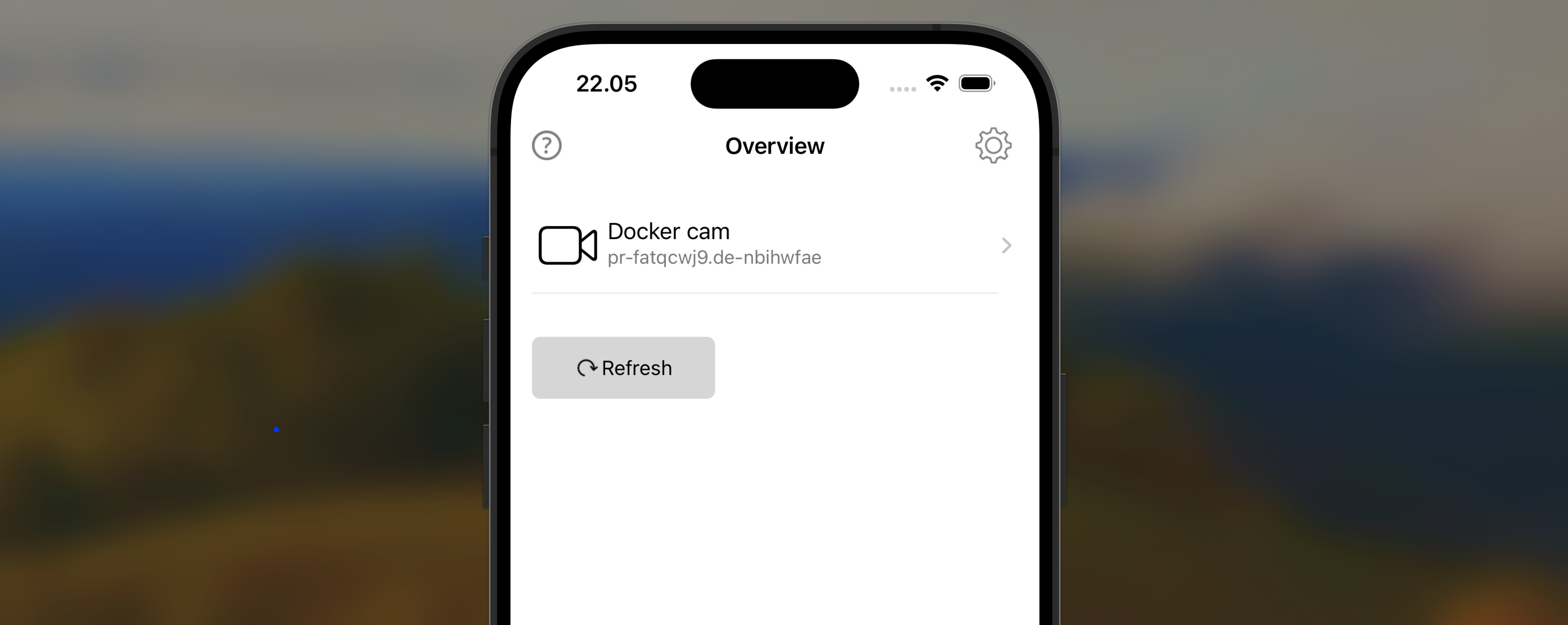The Nabto Edge WebRTC Video app for iOS demonstrates how to view a WebRTC video stream from a Nabto Edge WebRTC enabled camera.